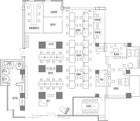 ▄設計風格定位: 此案例要求簡約、時尚,所以應盡量利用簡潔的建筑手法,避免采用過去的造型,繁瑣的細部裝飾,過多過濃的色彩點綴。頂面采用礦棉板吊頂,地面采用米黃色地磚鋪貼,隔斷統一使用透明玻璃加磨砂,所有的隔斷都沒有隔到頂,整個辦公空間顯得更寬敞明亮。我們應該創造性的解決客戶的要求,營造一個符合企業品質并且是舒適、健康、富有人性的辦公環境,使企業的精神文化在各個角度體現出來。